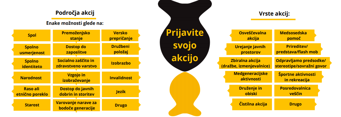 Vabimo vas, da skupaj zasnujemo konkretno akcijo, se bolje spoznamo in sodelujemo pri odpravi različnih težav in problemov, ki nas vse bremenijo! Skupaj smo močnejši, zato lahko le s sodelovanjem izboljšamo obstoječe stanje in zgradimo boljšo prihodnost. Področij in vrst akcij za našo aktivacijo, ki so na voljo, je ogromno, zato stopimo skupaj in gremo lepši prihodnosti naproti!